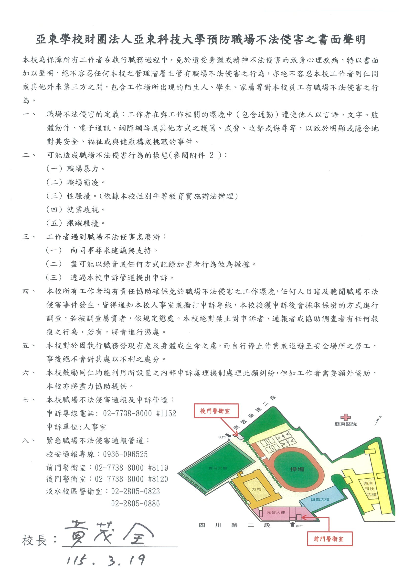 禁止工作場所職場暴力之書面聲明